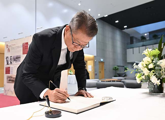 行政長官李家超今日(十一月二十九日)在政府總部簽署弔唁冊,向在大埔宏福苑火災不幸罹難的人士誌哀。