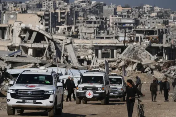 2025年12月1日星期一,红十字国际委员会(ICRC)成员抵达加沙地带北部贾巴利亚,哈马斯武装分子正在那里搜寻人质遗骸