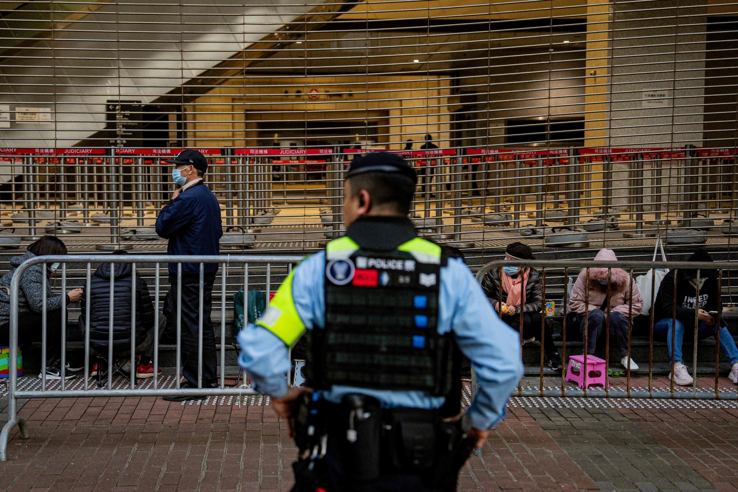 在香港西九龙法院大楼外排队,想聆听黎智英案判决结果,警员也到场维持秩序。-scaled.jpg)