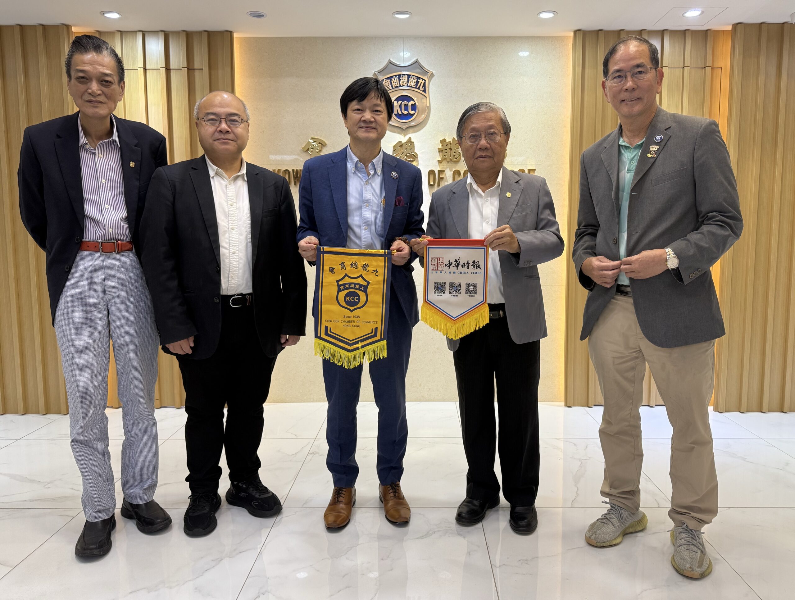 (中華新聞通訊社/中華時報3月31日訊)2026年3月31日上午,中華時報傳媒集團主席、香港藝術研究院院長、香港美術學院院長、粵港澳大灣區藝術聯合會主席曾曉輝教授,偕同中小企業國際聯盟主席彭華雄先生、會長梁華先生等一行,專程赴九龍總商會開展參訪交流活動。雙方圍繞2026年第八屆國際文化論壇合作籌辦事宜,進行了深入細緻且富有成效的磋商,正式達成共識,確定由九龍總商會協辦本屆論壇專屬分論壇,為這場國際文化交流盛會築牢合作根基。九龍總商會理事長梁金塘先生、副理事長伍培坤先生等商會核心領導熱情接待到訪一行,全程陪同參觀商會場館,並細緻講解商會逾八十年的厚重發展歷程與豐碩會務成果。