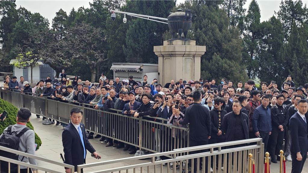 鄭麗文一行至南京中山陵拜謁國父孫中山先生陵寢,沿途有民眾夾道歡迎,高呼「兩岸一家親」「鄭麗文加油」「國民黨加油」「鄭麗文歡迎你」。導覽員也沿途介紹中山陵的建築特色與意涵。