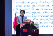 中華新聞通訊社/中華時報4月24日訊(記者李淩 通訊員張闡溪)萬象湄公河畔,燈火璀璨,絲韻傳情。2026年4月23日,慶祝中老建交65周年暨“中老友好年”招待會在老撾萬象地標酒店宴會廳隆重舉行。中國駐老撾大使館與老撾外交部共同主辦此次盛會,老撾黨和政府高級領導、中國駐老撾大使方虹、中老各界代表齊聚一堂,共慶兩國建交65載的深厚情誼。招待會現場,中國非物質文化遺產—楊一信絲綢針畫系列作品受邀亮相,以指尖匠心為這場跨越甲子的友好盛會,增添一抹靈動的文化亮色。