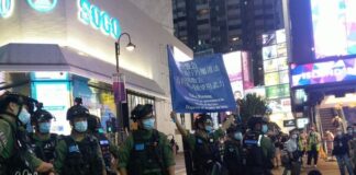 銅鑼灣等多處有市民聚集 獅子山上有人揮旗亮燈 至...
