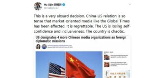 美方列四中官媒为外国使团 胡锡进贴文批做法荒唐