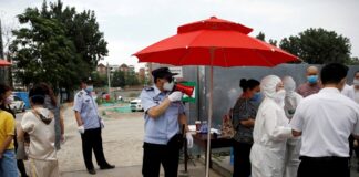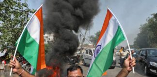新德里有示威者到中國大使館附近抗議