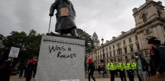 丘吉尔雕像遭反种族主义者损毁,约翰逊谴责破坏者背...