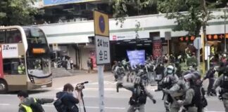 大埔中心外有人推杂物出马路 防暴警多次喷胡椒喷剂...