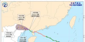中央氣象台料泰利今晚至明日凌晨在越南北部消散 本...