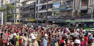 周六缅甸仰光等地爆发迄今最大规模反政变示威