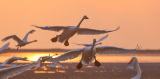 春暖鵝先知 山東榮成上萬隻大天鵝啟程北遷