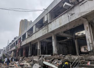 湖北十堰市燃氣爆炸 街市多處頹垣敗瓦