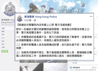 香港警方就确诊女警无戴口罩深感抱歉