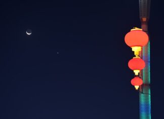 有眼福!全球多地天空黎明前上演天文奇观“金星合月”