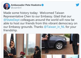 美國宣布取消美台交往限制後,美國外交官員分別與台灣...