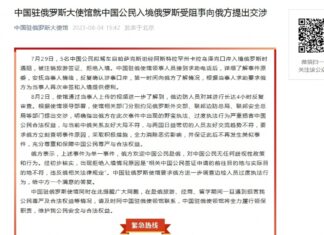 5名中國公民入境俄遭拒 中國大使館向俄方提出交涉
