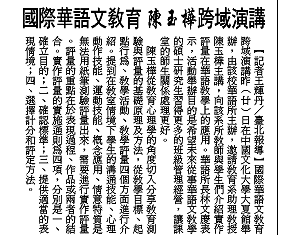 國際華語文教育 陳玉樺跨域演講