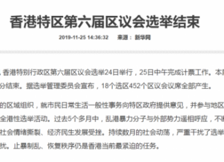 新華社有關香港區議會選舉的報道。新華網截圖 ...
