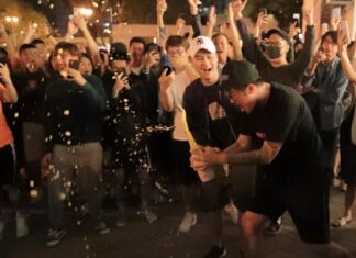 尖東科學館道仍然有近千人聚集,佔據馬路高叫口號,與...