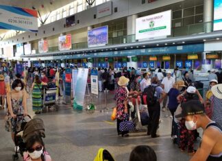 大批正在峴港旅遊的越南民眾,這兩天經峴港機...
