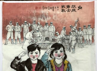 線上抗疫主題國際藝術作品展:陳家義-中国画《守望相助,共...