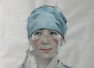 線上抗疫主題國際藝術作品展:許昭奇-國畫《最美的天使》
