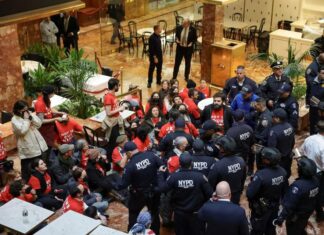 數以百計的猶太示威群眾今天占領紐約川普大樓(Tru...