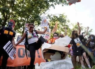 特朗普74岁生日:抗议者白宫外踩蛋糕“庆生”丨国际热点速...