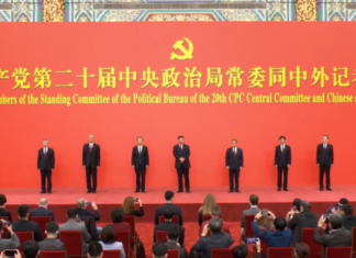 10月23日,中共領導人習近平攜二十大一中全會產生的新一屆中共中央政治局常委李強、趙樂際、王滬寧、蔡奇、丁薛祥和李希在北京人民大會堂亮相。按照出場順序和中共以往的職務安排,...