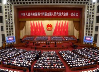 中國第十四屆全國人民代表大會第一次會議五日在北...