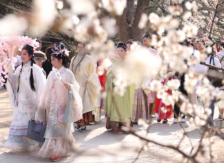 (神州寫真)武漢賞櫻季:機器人成“明星” 科技色彩...