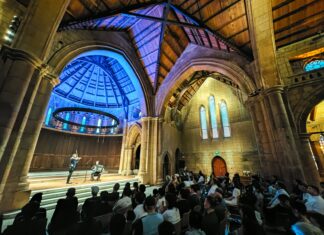 在天津百年歷史建築安裡甘藝術中心哥特式的穹頂下,一場小提琴與巴揚手風琴二重奏...