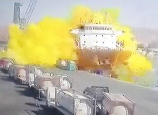 事發在昨日,當局說,一個裝有化學氣體的貨櫃,原定由起重機搬運到船上,但起重機突然故障,...