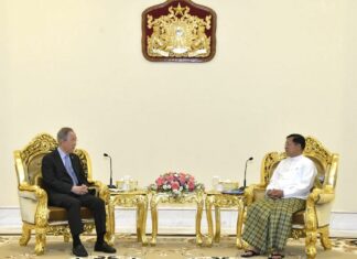 (中華新聞通訊社/中華時報4月25日訊)聯合國前秘書長潘基文在緬甸,與國防軍總司令敏昂萊會面。潘基文呼籲立即結束暴力。