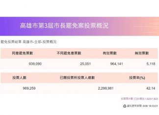 高雄市選民昨日以逾93萬票通過罷免市長韓國...