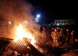 (中华时报讯)周四,乌克兰中部一个城镇的居民与警察...