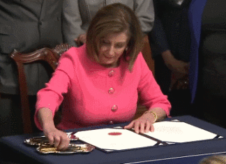 佩洛西用30支笔签弹劾条款, 同日特朗普把曾签中美协议一...