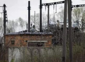 利沃夫附近的一個鐵路變電站遭到俄羅...
