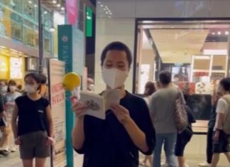 一位不知道姓名的年輕人,在銅鑼灣舉起用杯子...