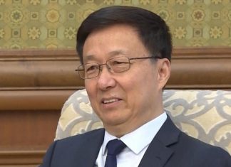 在北京,主管港澳事務的中共政治局常委韓正,...