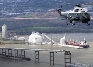 拜登到巴爾的摩視察被貨櫃船撞毀坍塌大橋