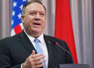 美国国务卿蓬佩奥星期三在国务院举行的新闻发...