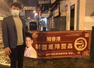 深水埗南昌街近汝州街,今日(28日)早上10時許,深水埗區議員劉家衡偕3男2女到達上址檢查懸掛於路旁的一幅寫有「願香港制警惡除警姦」橫額時,與警員起爭執,期間一名姓陳(24歲)...