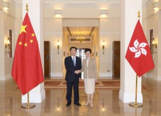 林鄭月娥在禮賓府與新任中聯辦主任駱惠寧會面